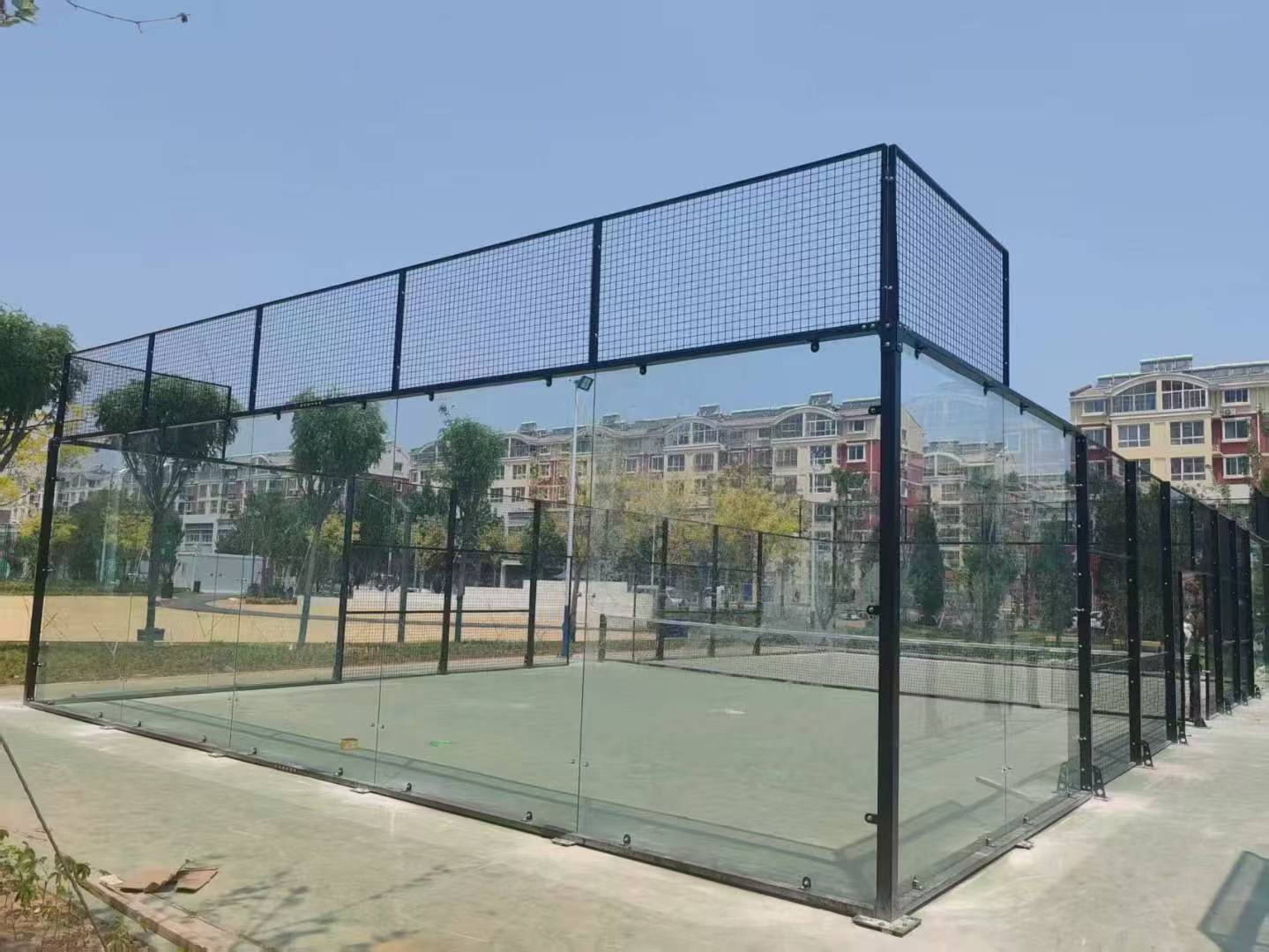 High-quality hot-dip galvanized steel structure. 100*100*3 mm Q235 steel poles, high-quality and aesthetically pleasing padel court.