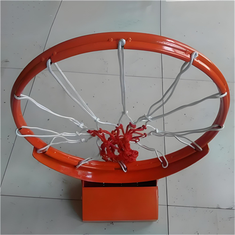 The rim may be made of solid steel, with a diameter conforming to international standards. It features a spring mechanism to withstand instantaneous impact, ensuring rim stability during shooting and the safety of the player during dunks. The lower edge of the rim may have evenly distributed hooks for attaching the net.